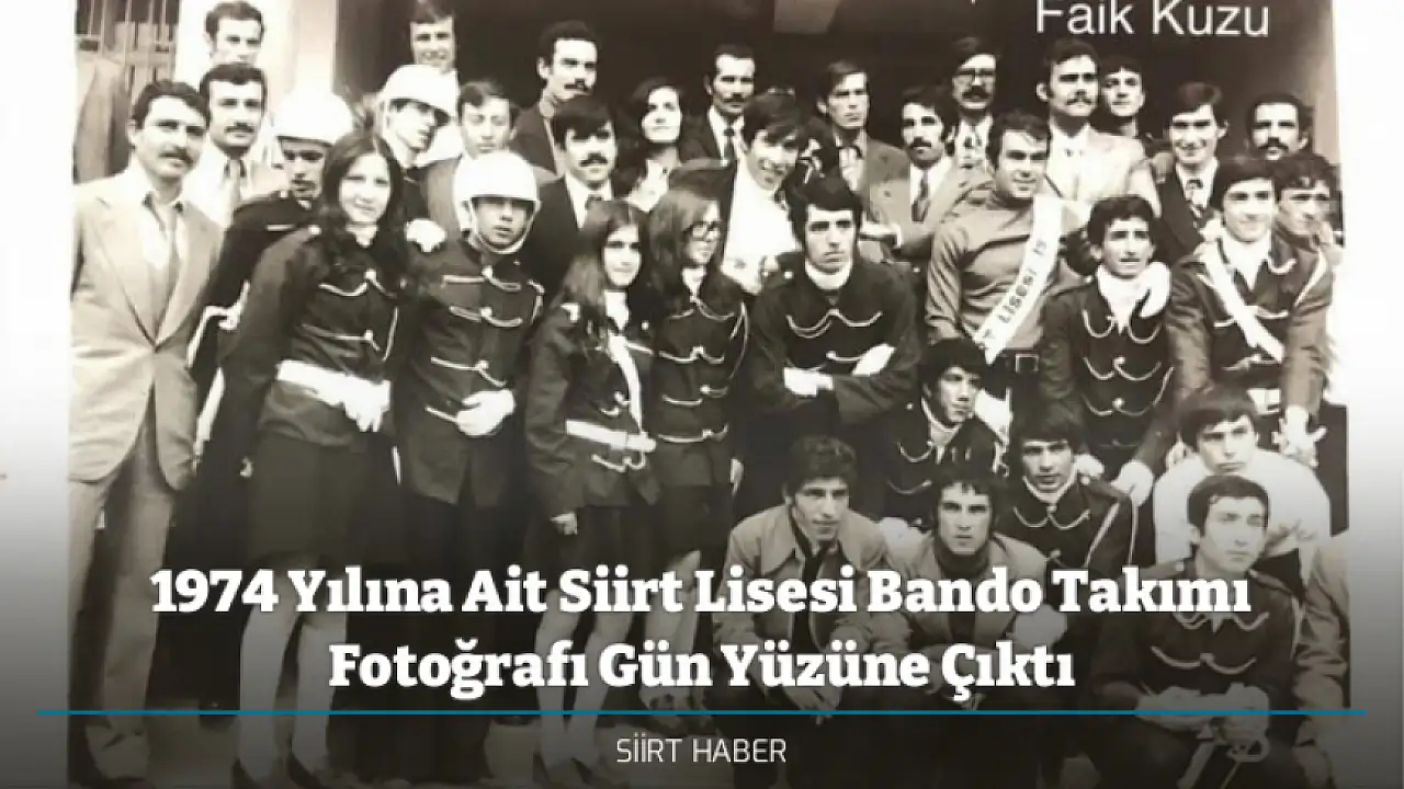 Siirt Lisesi'nin 29 Ekim 1974 tarihinde çekilen öğretmen ve okul bando takımı hatıra fotoğrafı, yıllar sonra gün yüzüne çıktı.