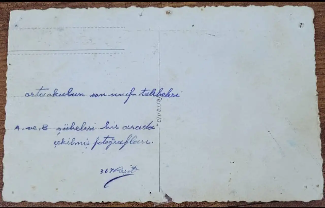 Hem ön hem de arka yüzünde döneme ait el yazıları bulunan fotoğraf, kentin eğitim tarihine ışık tutan önemli bir belge olarak değerlendirildi.