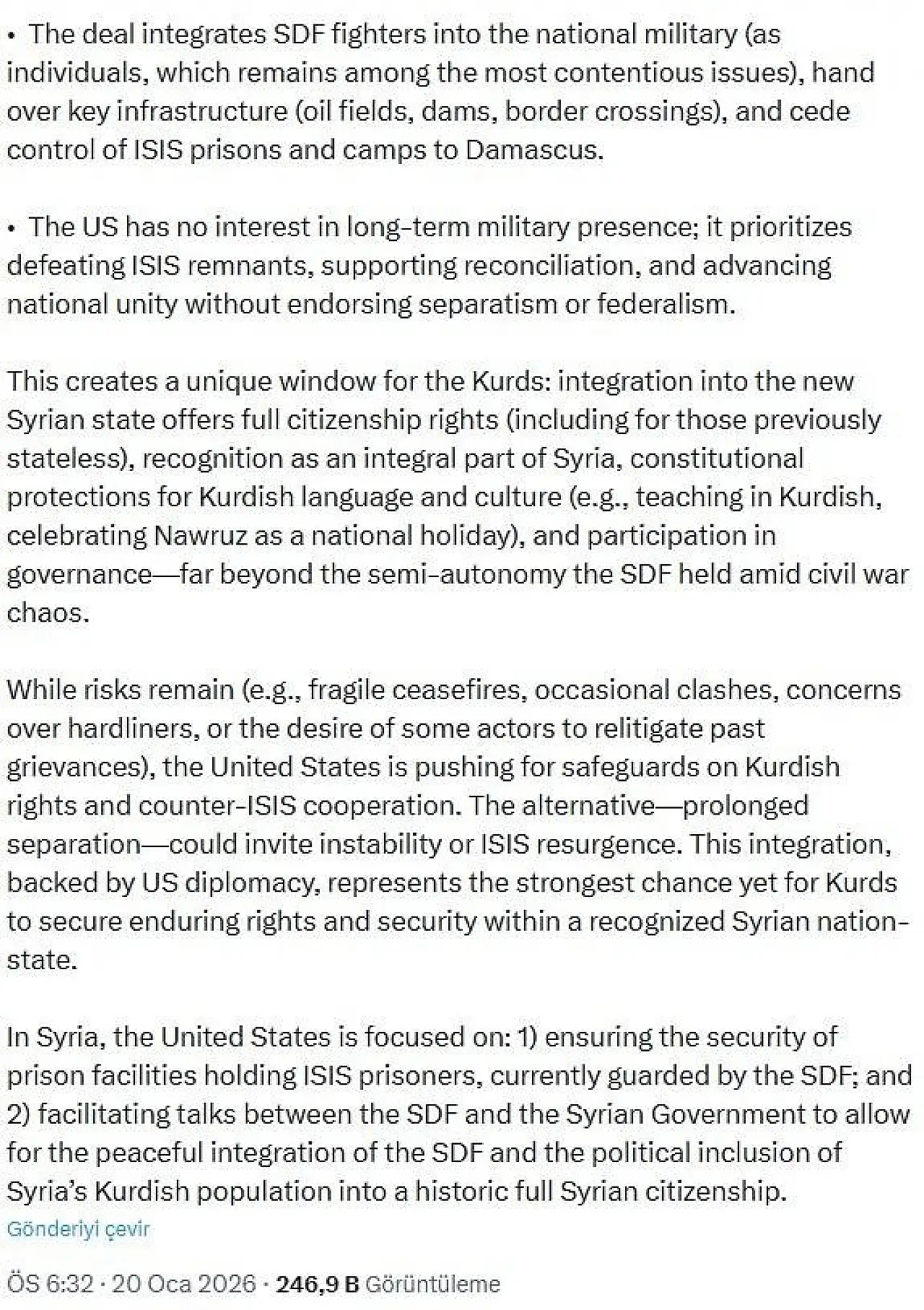 Bu açıklamalar, ABD’nin Suriye’de YPG/SDG merkezli güvenlik politikasını resmen geride bıraktığını ve yeni dönemde Şam’ı muhatap alan bir çerçeveye geçtiğini ortaya koydu.
