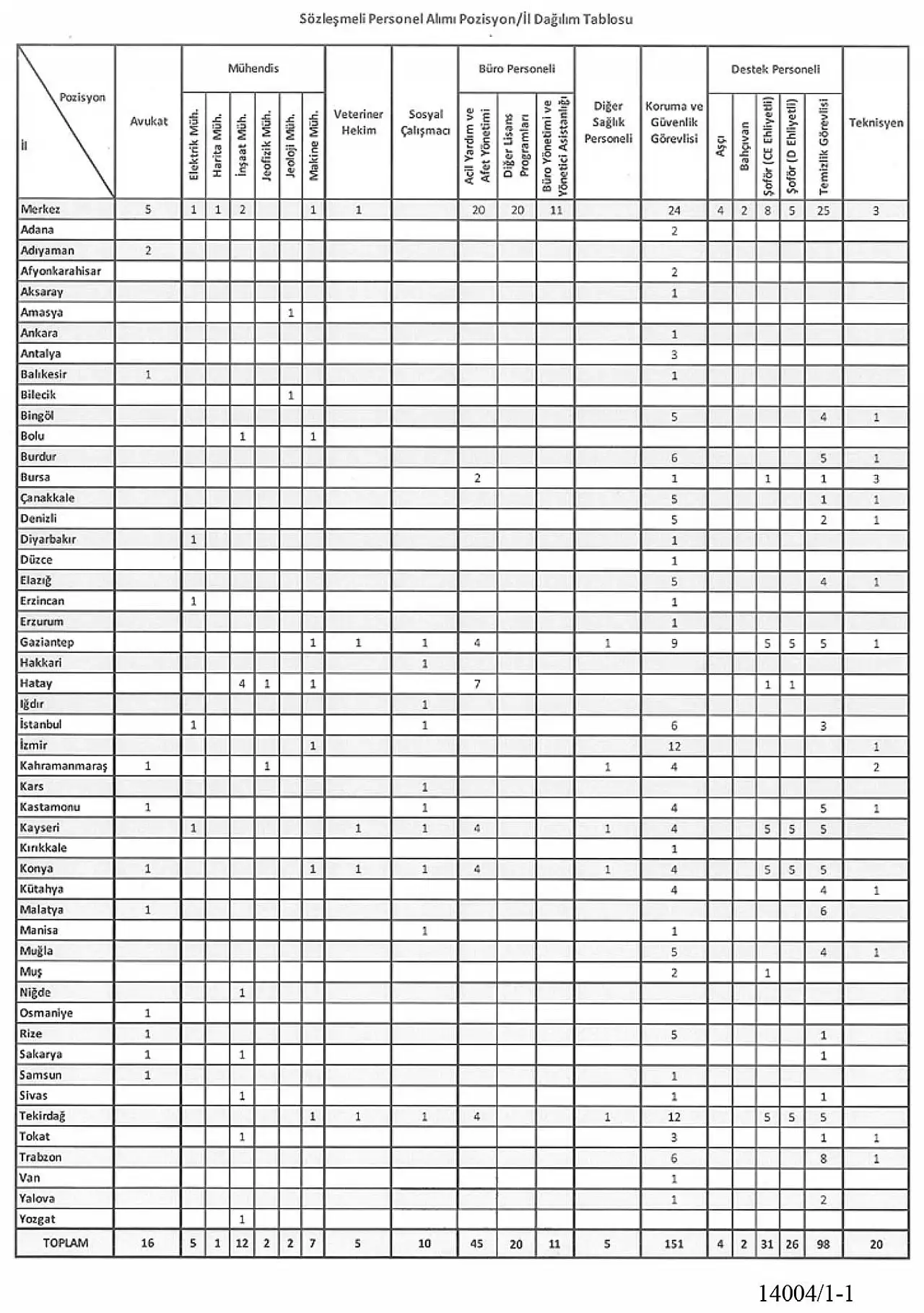 İlana göre AFAD bünyesinde; avukat, mühendis, büro personeli, veteriner, sosyal çalışmacı, sağlık personeli, koruma ve güvenlik görevlisi, destek personeli ile teknisyen unvanlarında personel istihdam edilecek. Farklı meslek gruplarını kapsayan alım, kamuoyunda yoğun ilgi gördü.