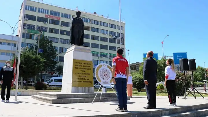 KORONAVİRÜS PANDEMİSİ sebebiyle açık alanlarda kutlamalar yapılamazken, şehrimizde etkinlikler Gençlik ve Spor İl Müdürü Hüssam Olgaç başkanlığında kurum yöneticilerinden oluşan heyetin Atatürk Anıtına çelenk sunmasıyla start aldı.