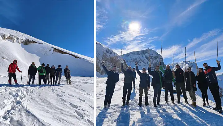 İshat Turgut ise yoğun kar yağışına dikkat çekerek, 'Yer yer diz boyunu aşan kar vardı. Şehrin gürültüsünden ve stresinden uzaklaşmak için doğa ve dağlar çok güzel bir alternatif. Herkese tavsiye ediyorum. Ancak gelirken çöplerimizi yanımıza almalı, doğaya sahip çıkmalıyız' diye konuştu.