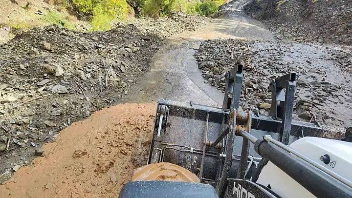 Batman'ın Sason ilçesine bağlı Derince, Yücebağ ve Dörtbölük grup köy yollarında meydana gelen heyelan sonrası yola düşen dev kayalar, İlçe Özel İdaresi şantiye ekipleri tarafından temizlendi.