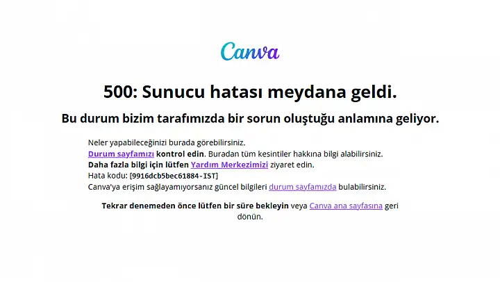Canva'nın resmi durum sayfasında henüz bir açıklama yapılmadı ancak hata mesajları, sistemin geçici bir sunucu arızası veya yoğun trafik nedeniyle hizmet veremediğini gösteriyor.