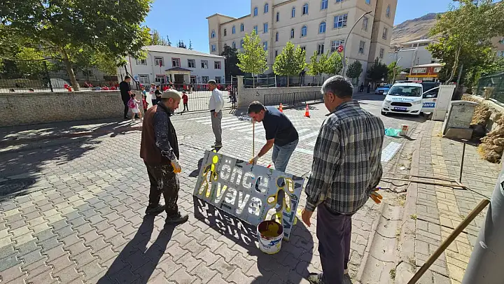 Pervari'de Okul Önlerinde Yaya Geçitleri Yenilendi