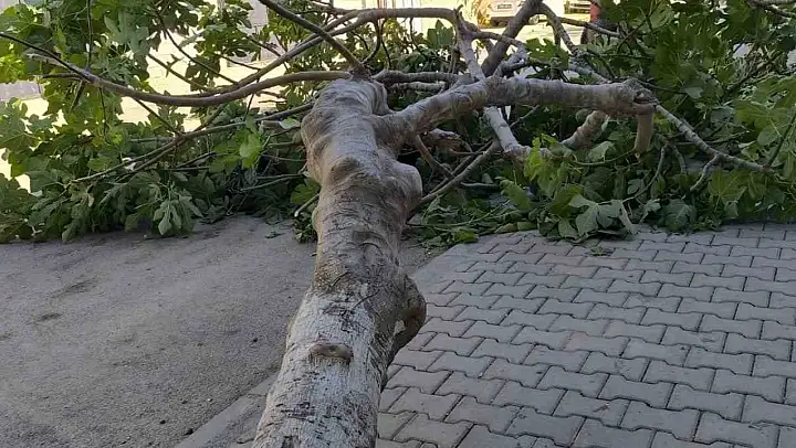 Adıyaman'da, rüzgara dayanamayan bir ağaç devrildi.