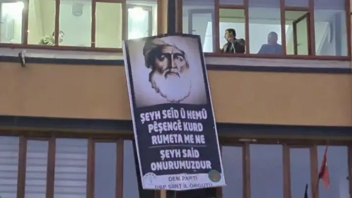 Halkların Eşitlik ve Demokrasi Partisi (DEM Parti) ile Demokratik Bölgeler Partisi'nin (DBP) Siirt İl Örgütü, parti binasına Şeyh Said'in posterini astı.Posterin üzerinde 'Şêx Seîd û hemû pêşengê Kurd rûmeta me ye Şeyh Said onurumuzdur' yazısının bulundu