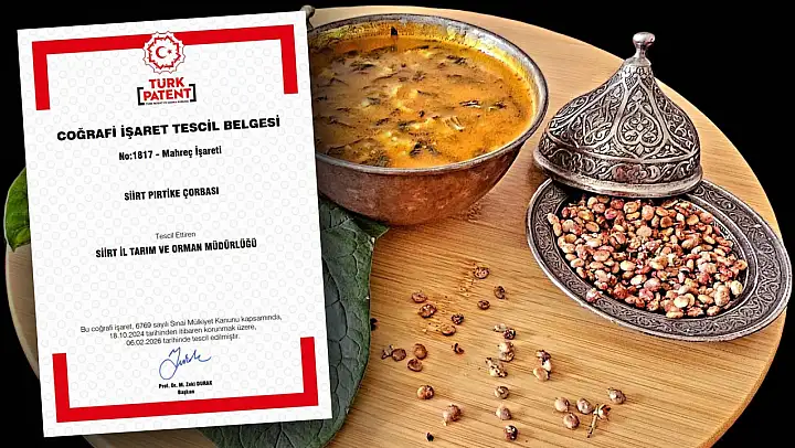 Siirt mutfağının köklü ve özgün lezzetlerinden Siirt Pırtike Çorbası, Türk Patent ve Marka Kurumu tarafından Coğrafi İşaret Tescil Belgesi ile tescillenerek resmen koruma altına alındı.