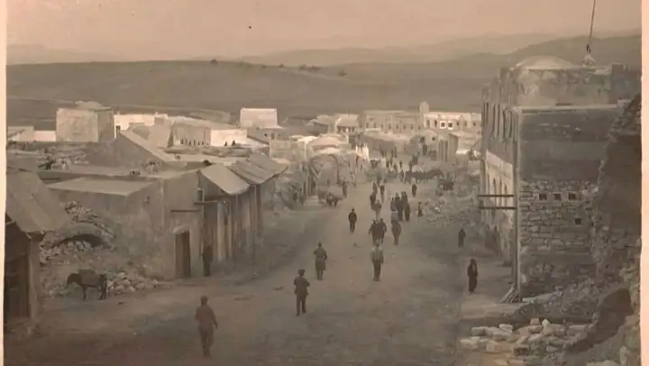 Fotoğrafta, dönemin mimarisini yansıtan castan (kerpiç) yapılar ve çevredeki yoğun insan kalabalığı, o yıllarda bölgenin kentin en hareketli noktalarından biri olduğunu gösteriyor.