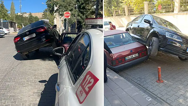 Siirt'in Yeni Mahalle Hami Efendi Caddesi'nde meydana gelen kazada, kontrolden çıkan bir otomobil park halindeki aracın üzerine çıktı. Olayda yaralanan olmazken, ortaya çıkan görüntü dikkat çekti.