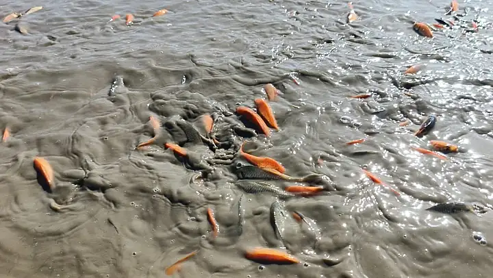 Göletteki acı manzara, bölge sakinleri tarafından cep telefonu kamerasıyla görüntülendi. Görüntülerde balıkların çamur içinde can çekiştiği ve göletin büyük oranda kuruduğu görüldü.
