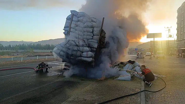 İhbar üzerine olay yerine sevk edilen itfaiye ekipleri, yoğun müdahale sonucu yangını kontrol altına aldı ancak kamyondaki 14 ton saman kullanılamaz hale geldi.