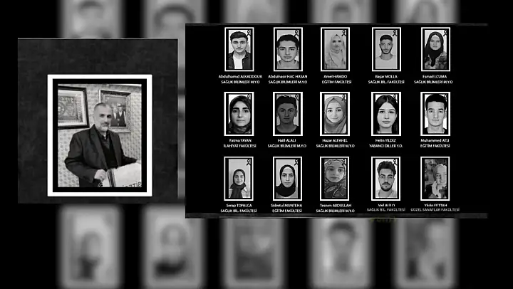 Siirt Üniversitesi Rektörlüğü'nün paylaşımında, depremde yaşamını yitiren 1 öğretim üyesi ve 15 öğrenci rahmetle yad edilirken, 'Unutmadık, unutmayacağız' mesajına yer verildi.