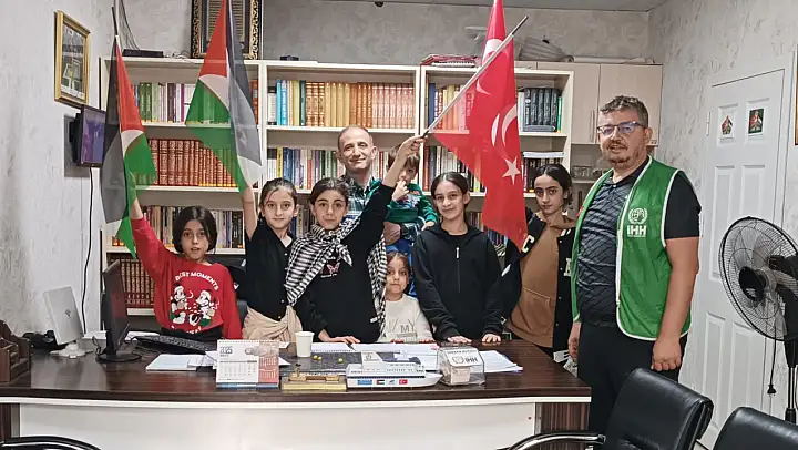 Bağışa katılan çocuklar ise, 'Filistin'deki kardeşlerimiz üzülmesin, biz de bir nebze destek olmak istedik' diyerek duygularını dile getirdi.