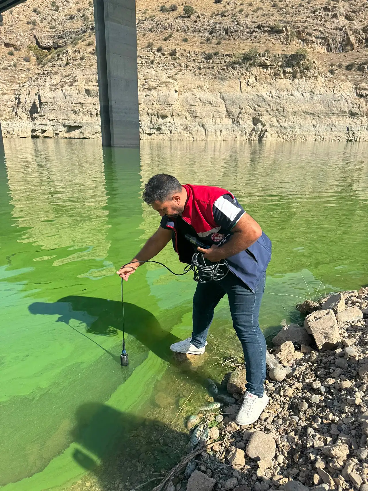 Kayaboğaz Köprüsü Meydandere mevkisinde yapılan ilk incelemede, göl yüzeyinde yoğun alg oluşumu ve suyun renginin koyu yeşile döndüğü tespit edildi. Ekipler, sudan ve ölü balıklardan numuneler alarak Elazığ’daki laboratuvarlara gönderdi.