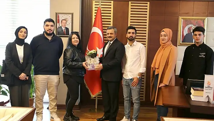 Rektör Şındak, böyle anlamlı bir günde kendisini ziyaret eden Aşçılık Topluluğu öğrencilerine bu nazik davranışlarından dolayı duyduğu memnuniyeti dile getirip teşekkür etti.