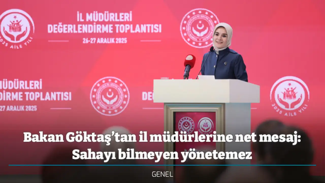 Aile ve Sosyal Hizmetler Bakanı Mahinur Özdemir Göktaş, 81 il müdürüyle yapılan değerlendirme toplantısında sahaya hâkim, hızlı ve sorumluluk alan bir yönetim anlayışı istedi. Şiddet ve istismar vakalarında gecikmeye asla izin verilmeyeceğini vurgulayan Göktaş, 'Risk puanı müdahale çağrısıdır, saha yönetimini bizzat sahiplenin' dedi.