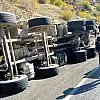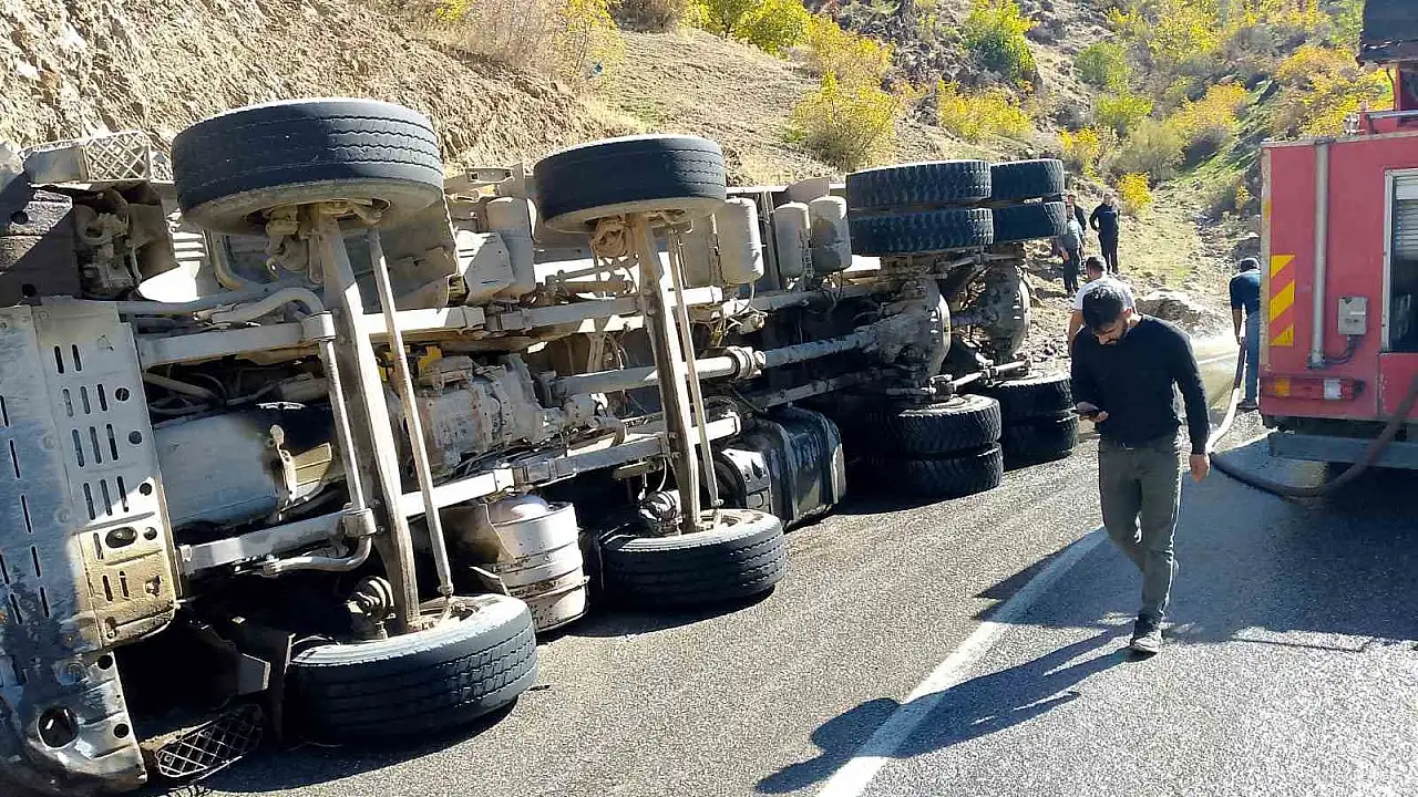 Batman'da virajı alamayan asfalt yüklü kamyon devrildi