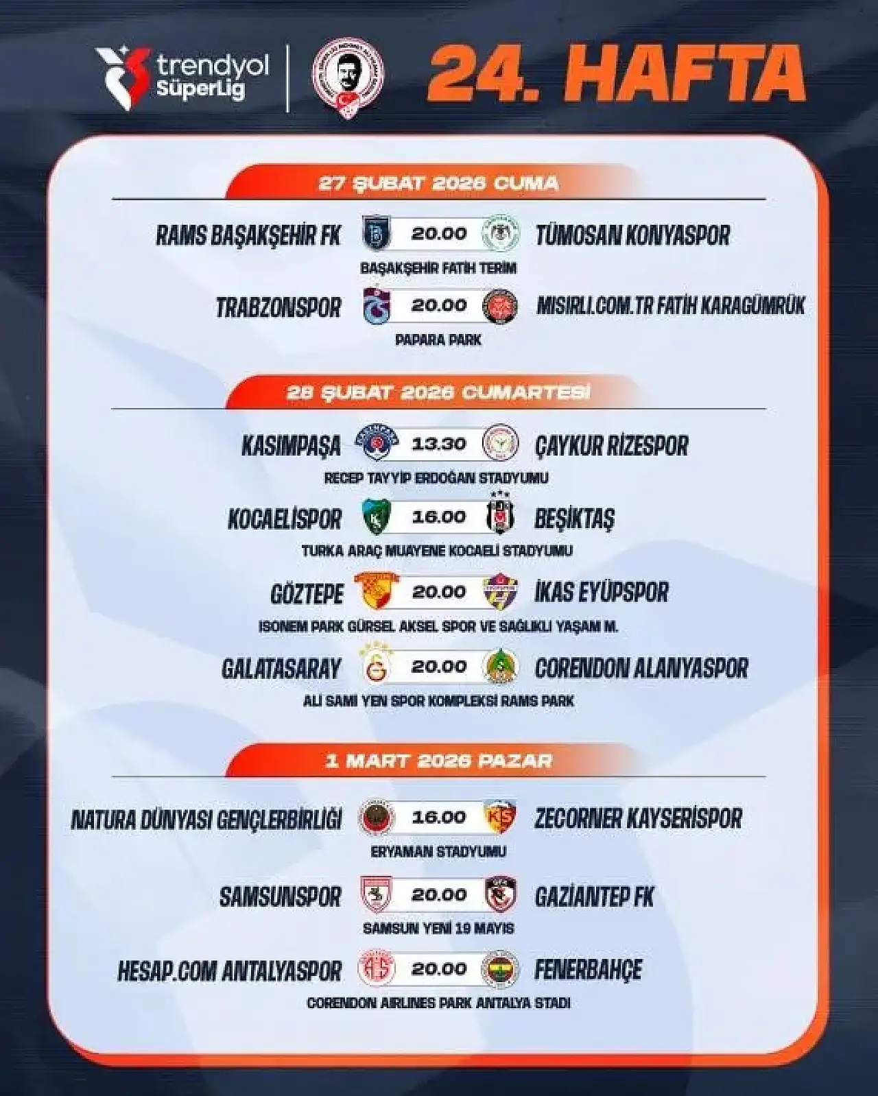 Türkiye Futbol Federasyonu’ndan yapılan açıklamada, 24–25. hafta fikstürünün; Ziraat Türkiye Kupası grup maçları ile Avrupa kupalarında mücadele eden Türk takımlarının olası tur atlama ihtimalleri dikkate alınarak planlandığı belirtildi. Ayrıca birbirini ilgilendiren müsabakaların aynı gün ve saatlerde oynanmasına özen gösterildiği vurgulandı.