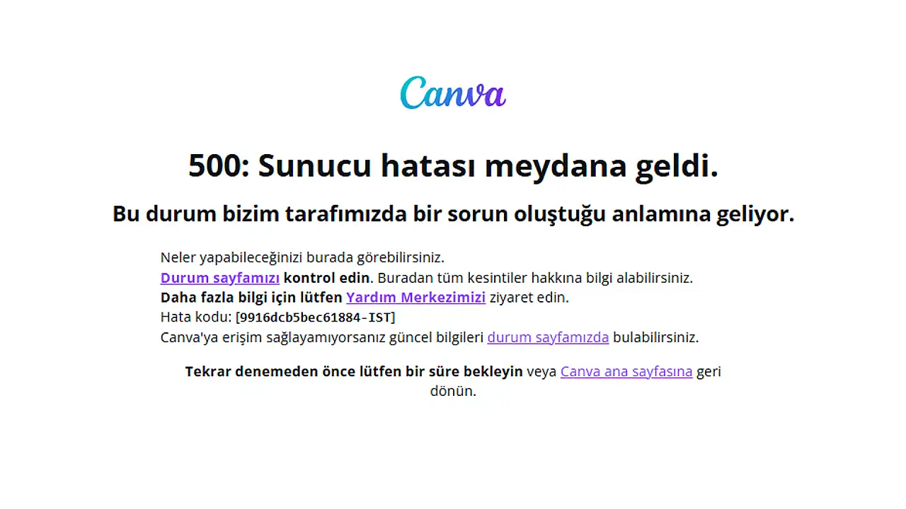 Canva’nın resmi durum sayfasında henüz bir açıklama yapılmadı ancak hata mesajları, sistemin geçici bir sunucu arızası veya yoğun trafik nedeniyle hizmet veremediğini gösteriyor.