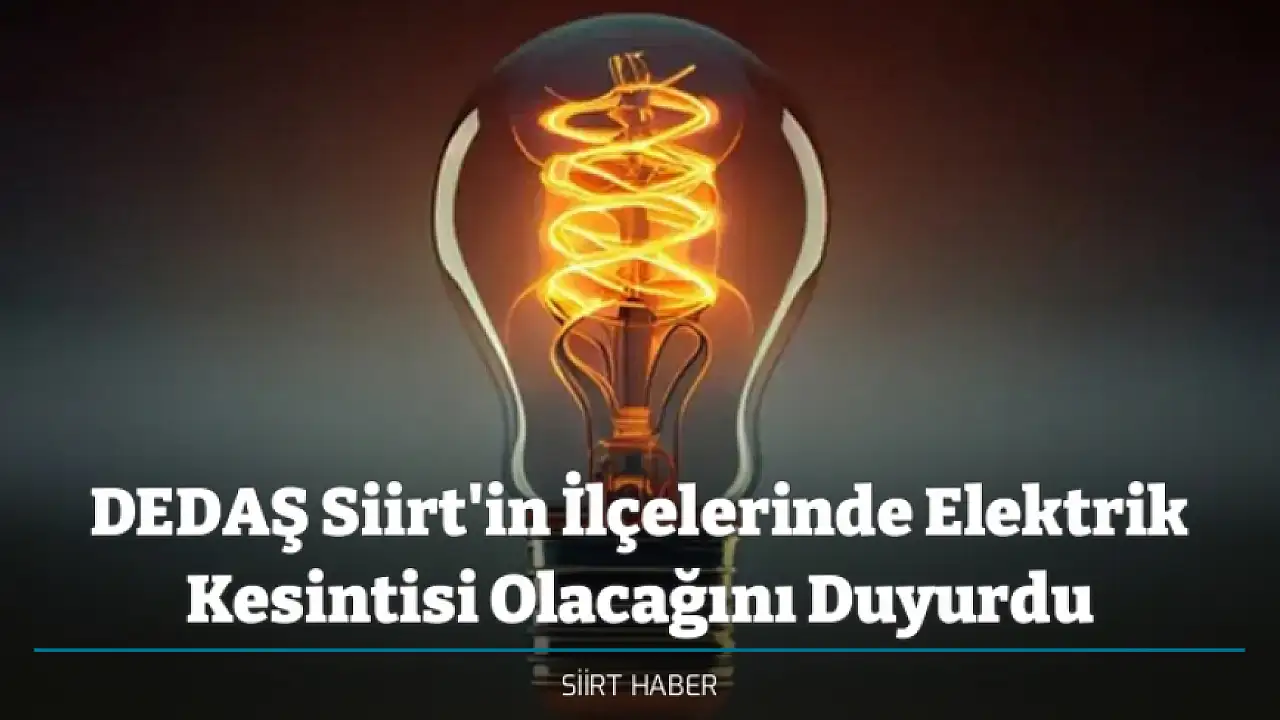 - DEDAŞ Siirt'in İlçelerinde Elektrik Kesintisi Olacağını Duyurdu
