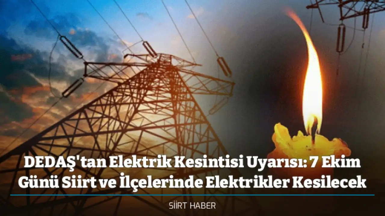 - DEDAŞ'tan Elektrik Kesintisi Uyarısı: 7 Ekim Günü Siirt ve İlçelerinde Elektrikler Kesilecek