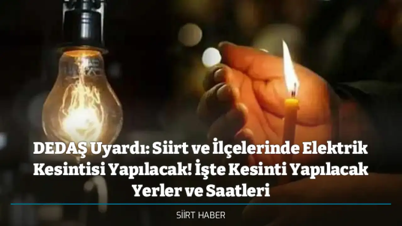 - DEDAŞ Uyardı: Siirt ve İlçelerinde Elektrik Kesintisi Yapılacak! İşte Kesinti Yapılacak Yerler ve Saatleri