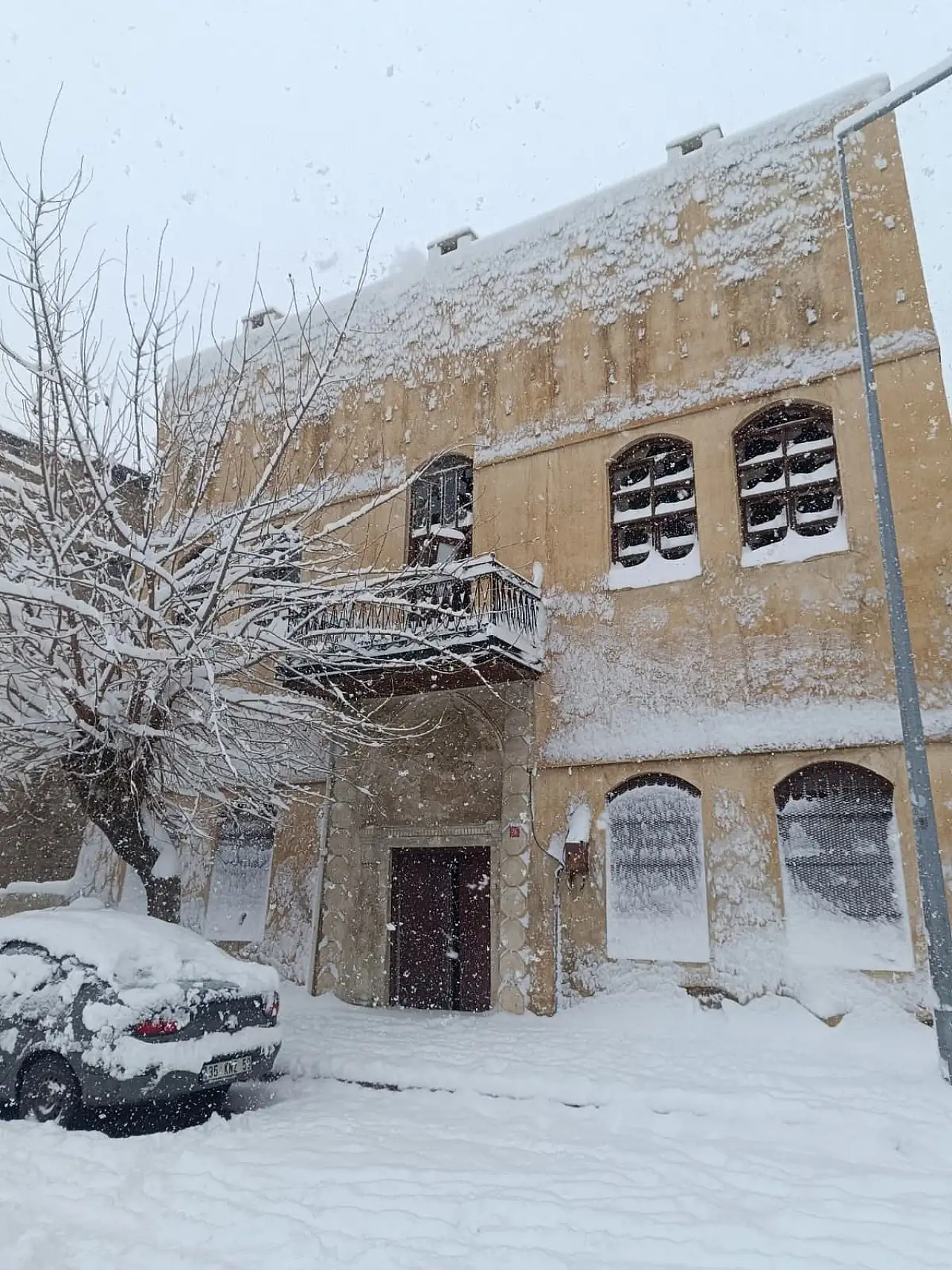 Kentte, geçmişte yalnızca cas evlerinin bulunduğu dönemleri hatırlatan kar manzarası, Siirt’in simgelerinden biri olan tarihi cas evinde kartpostallık görüntüler oluşturdu. Siirt’te koruma altında bulunan tek tarihi cas evi, kar yağışıyla birlikte beyaza bürünerek görenleri adeta büyüledi.