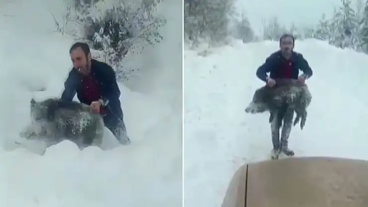Sinop'un Erfelek ilçesinde, yolda karşılaştığı domuz sürüsünün arasına girerek eliyle yavru domuz yakalayan bir kişiye idari para cezası uygulandı. O anlara ait görüntülerin sosyal medyada yayılması üzerine olayla ilgili resmi inceleme başlatıldı.