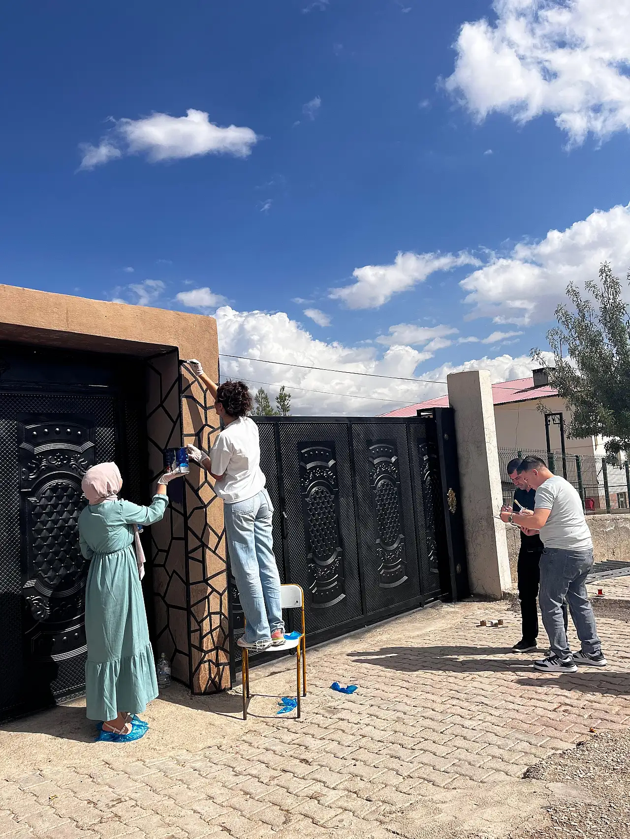 Siirt'in Eruh ilçesinde bulunan Mehmet Akif Ersoy İlkokulu öğretmenleri, öğrenciler için örnek bir dayanışma sergiledi. Yaz tatilinde okulda bulunan masa ve sıraları kendi elleriyle onaran öğretmenler, bu kez okulun giriş kapısının yan duvarlarını rengârenk boyadı.