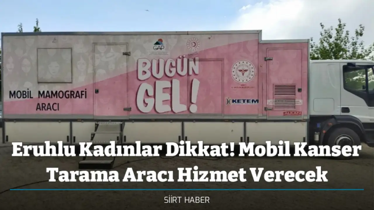 Siirt İl Sağlık Müdürlüğü tarafından görevlendirilen mobil kanser tarama aracı, Eruh ilçesinde vatandaşlara yönelik ücretsiz tarama hizmeti verecek.