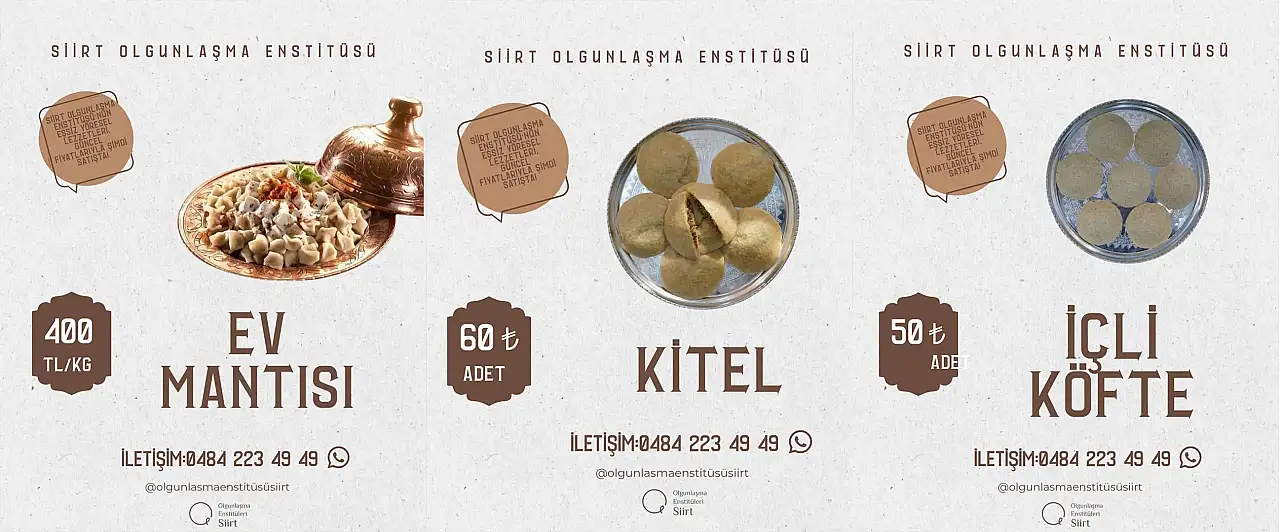 Sipariş ve detaylı bilgi almak isteyenler 0484 223 49 49 numaralı telefon üzerinden Siirt Olgunlaşma Enstitüsü ile iletişime geçebiliyor.