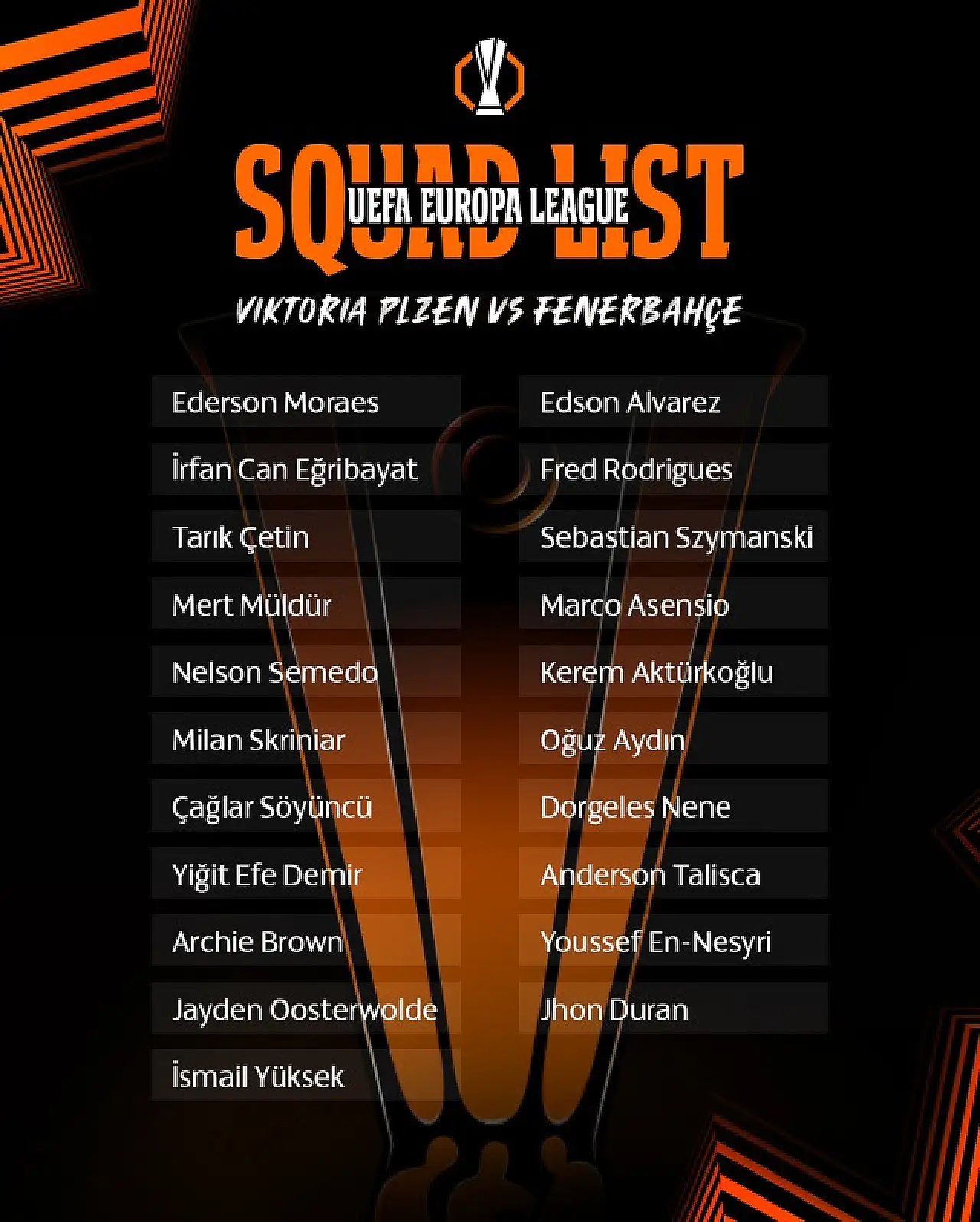 Fenerbahçe’nin Viktoria Plzen maçı kamp kadrosu: