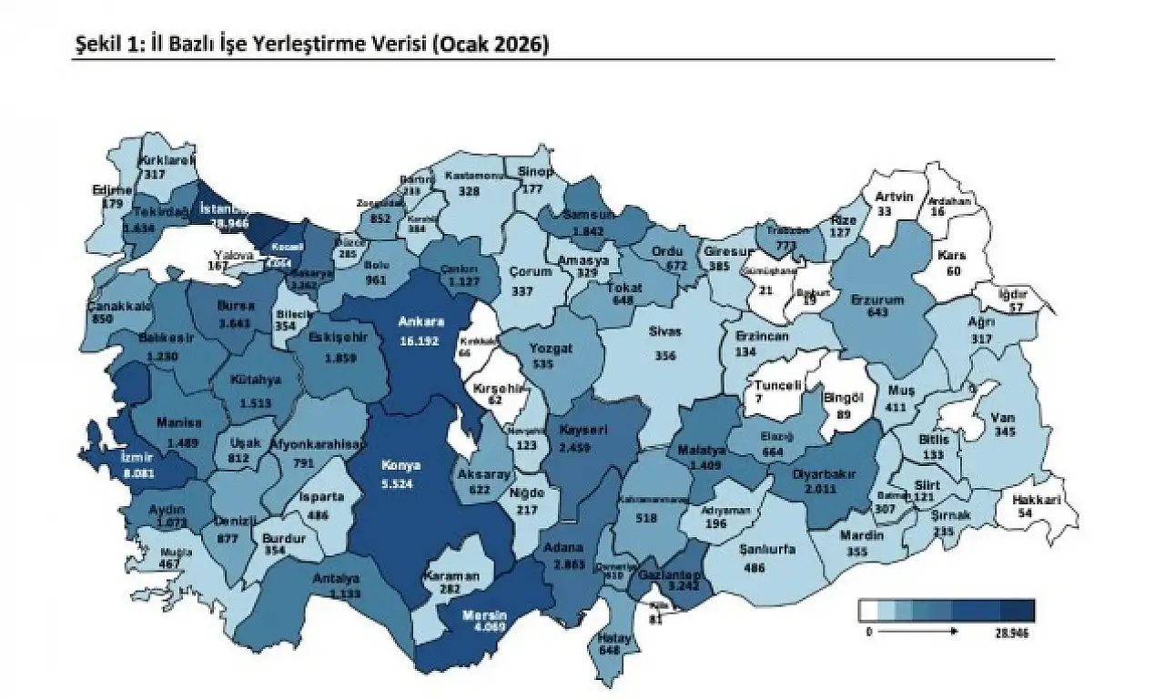 Ocak 2026 verileri, iş gücü piyasasında talebin büyük ölçüde özel sektör ve hizmet alanında yoğunlaştığını gösterirken, bazı illerde istihdamın sınırlı kaldığı gerçeğini de gözler önüne serdi.