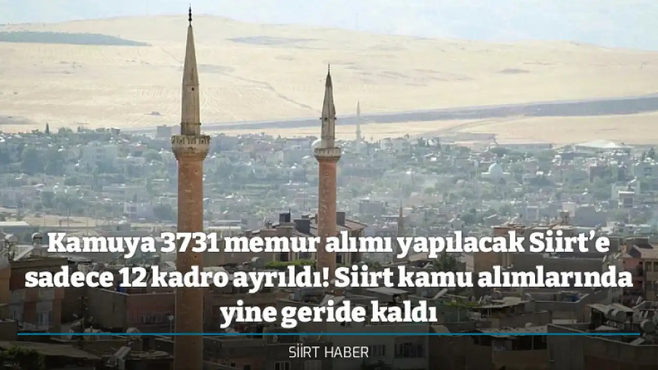 - Kamuya 3731 memur alımı yapılacak Siirt'e sadece 12 kadro ayrıldı! Siirt kamu alımlarında yine geride kaldı
