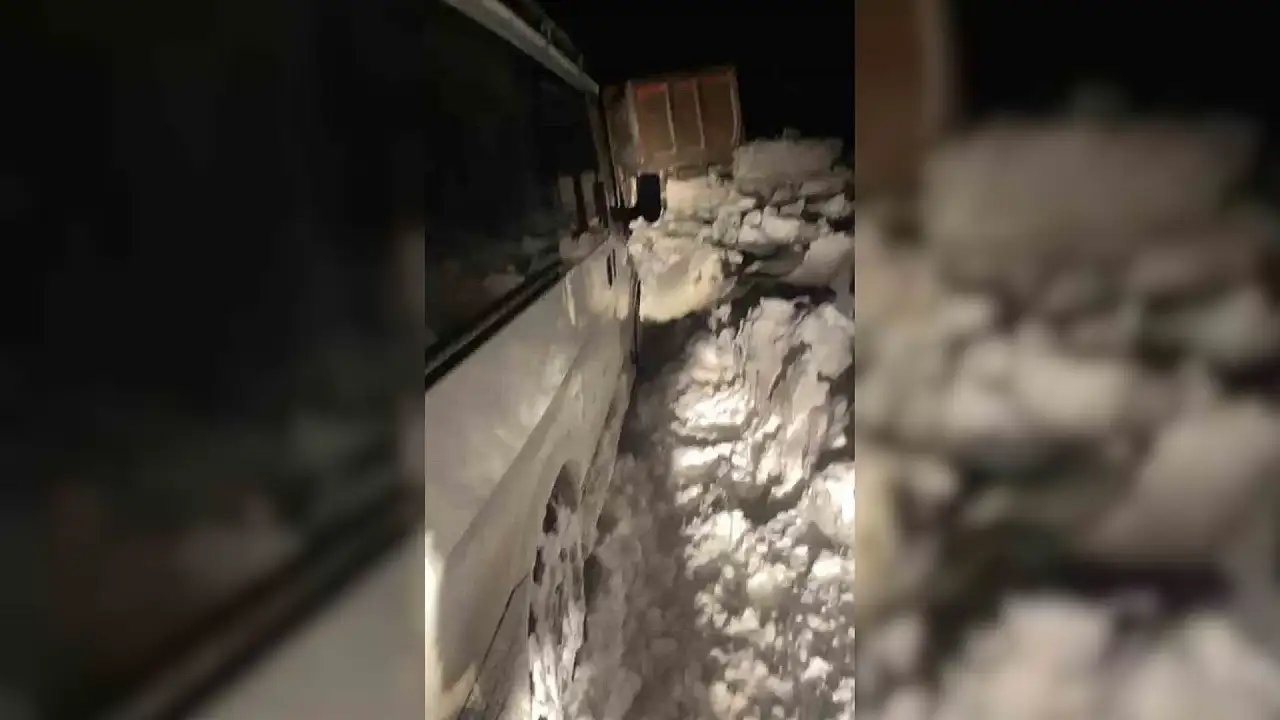 Siirt’te kar ve tipi nedeniyle yolda mahsur kalan araçlar, ağır vasıta ile arıza gidermeye çıkan ekiplerin izini takip ederek kurtuldu.