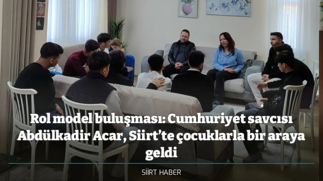 Geçmiş yıllarda Siirt’te kurum bakımında yetiştikten sonra reşit olarak ayrılan ve halen İstanbul’da Cumhuriyet Savcısı olarak görev yapan Abdülkadir Acar, Siirt Aile ve Sosyal Hizmetler İl Müdürü Sabri Sidar ile birlikte çocuklarla bir araya geldi. Ziyaret kapsamında Savcı Acar, mesleki kariyer sürecini, eğitim hayatını ve çalışma deneyimlerini çocuklarla paylaşarak tecrübelerini aktardı.