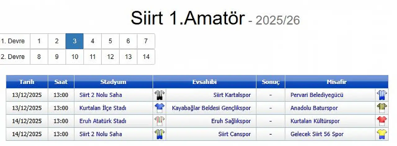 Siirt 1. Amatör Lig'de 2025/26 sezonunun üçüncü haftası, kritik karşılaşmalarla futbolseverleri heyecanlandırmaya hazırlanıyor. Haftanın en çok merak edilen mücadelesi ise ligde zirveyi paylaşan iki güçlü ekip Siirt Canspor ile Gelecek Siirt 56 Spor arasında oynanacak.