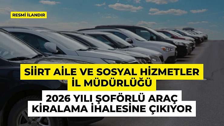 - Siirt Aile ve Sosyal Hizmetler İl Müdürlüğü 2026 Yılı Şoförlü Araç Kiralama İhalesine Çıkıyor