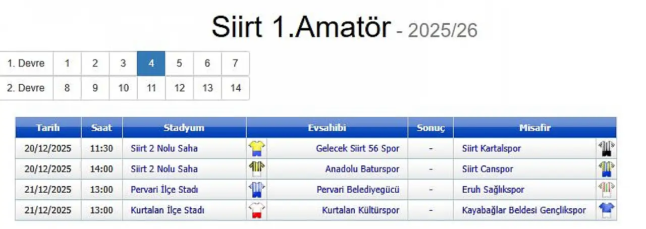 Siirt 1. Amatör Lig 2025–2026 sezonunda 4'üncü hafta karşılaşmalarının programı belli oldu