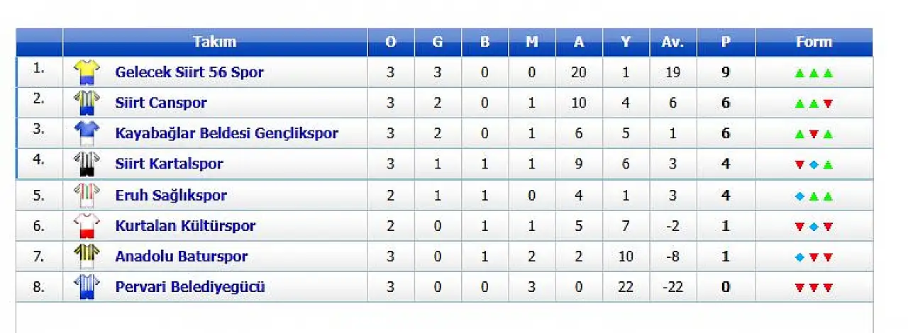 Üç hafta sonunda ligde oluşan puan durumu ise şöyle: