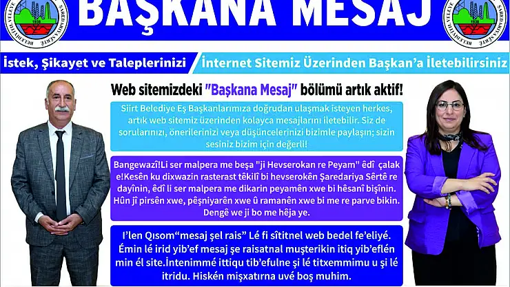 - Siirt Belediyesi 'Başkana Mesaj' Modülü ile Vatandaşların Sesine Kulak Veriliyor