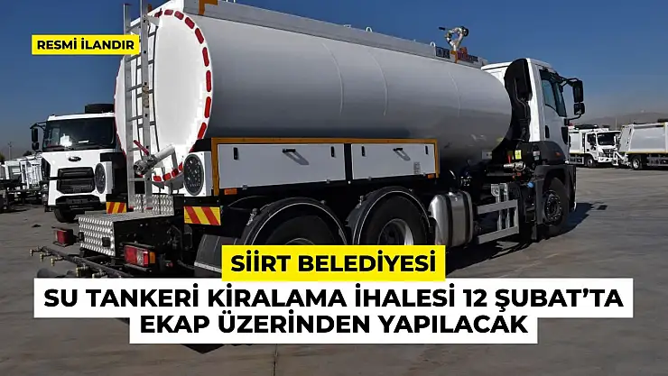 - Siirt Belediyesi Su Tankeri Kiralama İhalesi 12 Şubat'ta EKAP Üzerinden Yapılacak