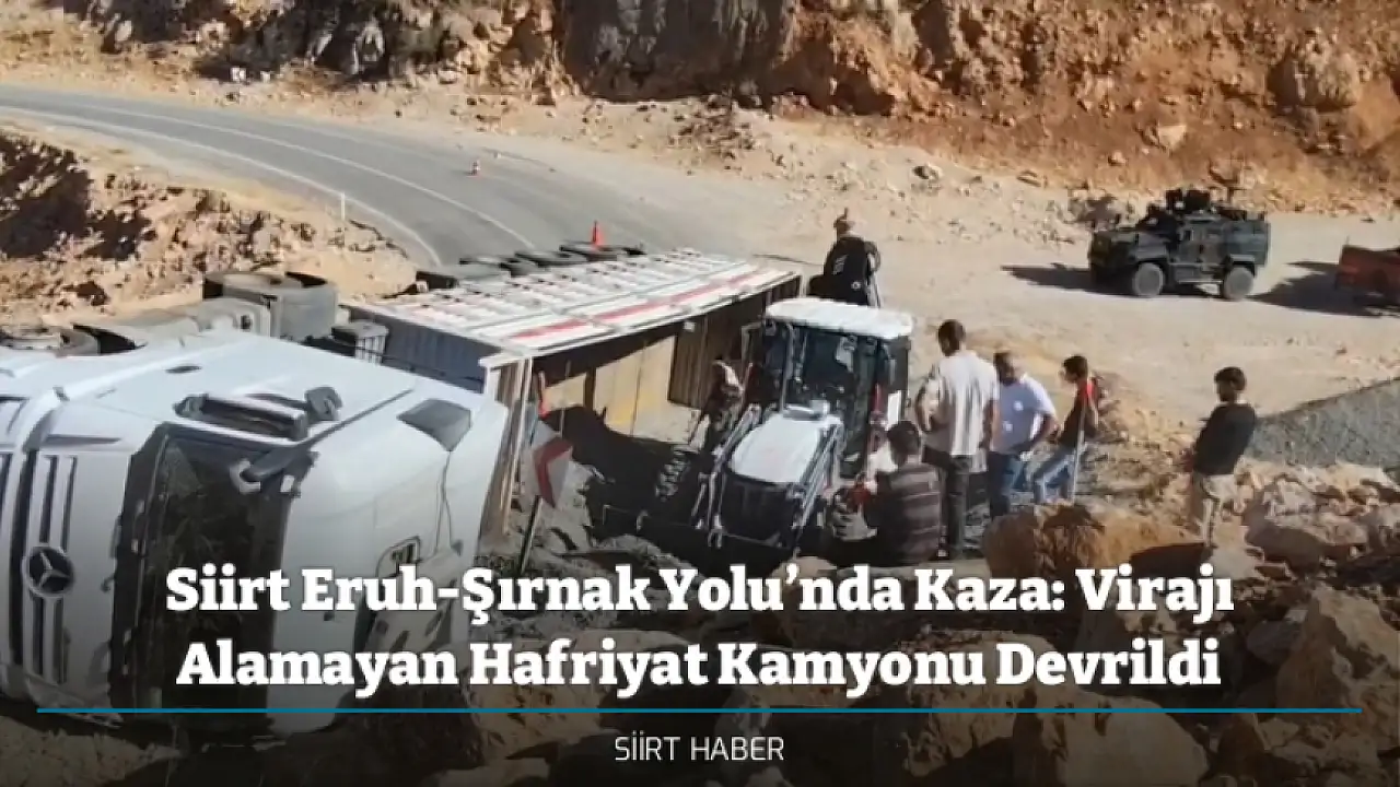 - Siirt Eruh-Şırnak Yolu'nda Kaza: Virajı Alamayan Hafriyat Kamyonu Devrildi