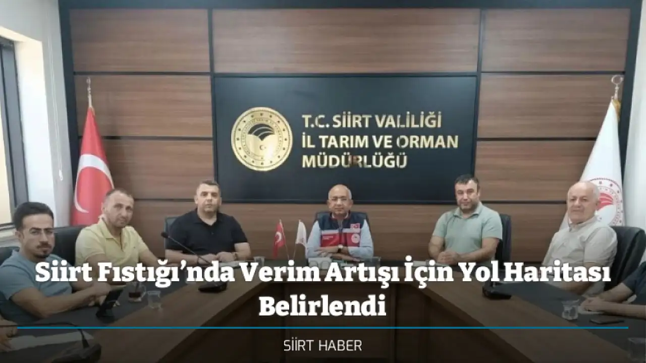 Siirt Tarım ve Orman İl Müdürlüğü, Siirt fıstığında ağaç başı verimin artırılmasına yönelik önemli bir toplantı gerçekleştirdi. İl Müdürü Mustafa Şanverdi başkanlığında düzenlenen toplantıda, 'Siirt Fıstığı Üretiminde Birim Alandan Maksimum Verim Elde Etme' amacıyla yürütülecek çalışmalar ele alındı.