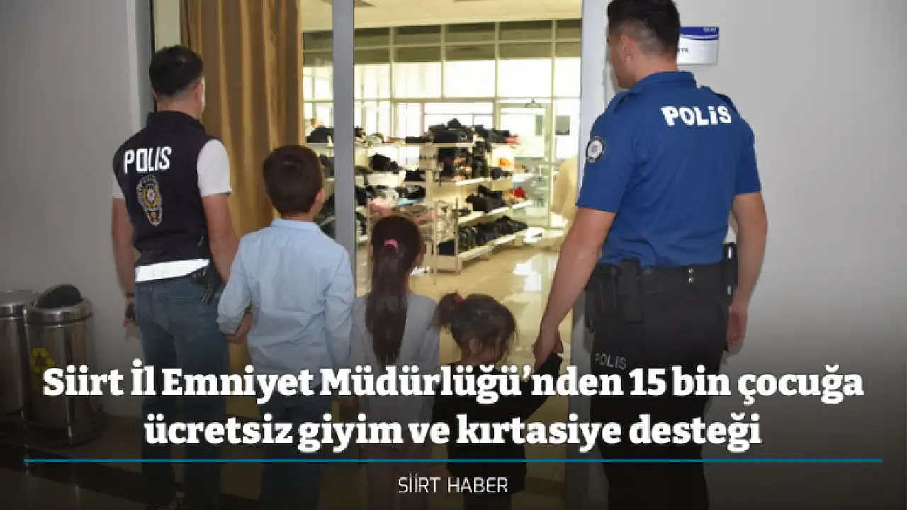 - Siirt İl Emniyet Müdürlüğü'nden 15 bin çocuğa ücretsiz giyim ve kırtasiye desteği