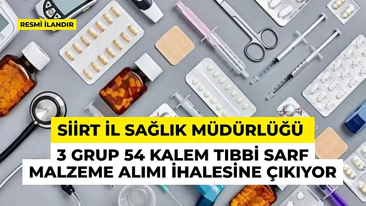 - Siirt İl Sağlık Müdürlüğü 3 Grup 54 Kalem Tıbbi Sarf Malzeme Alımı İhalesine Çıkıyor