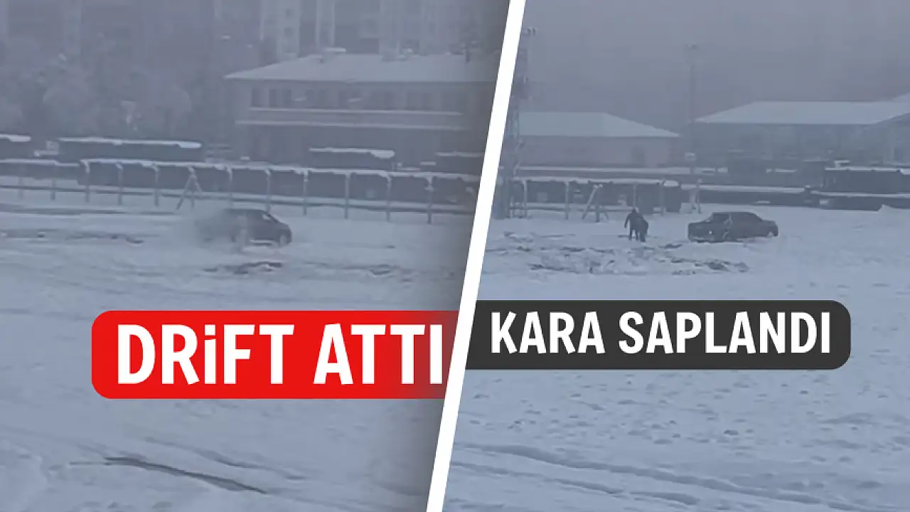 - Siirt Kurtalan'da kar üzerinde önce drift yaptı sonra kara saplandı