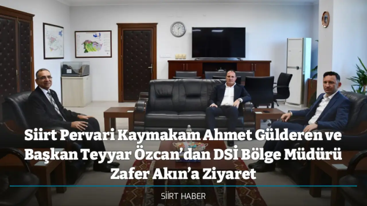Devlet Su İşleri (DSİ) 10. Bölge Müdürlüğü’nde önemli bir ziyaret gerçekleştirildi. Siirt’in Pervari Kaymakamı Ahmet Gülderen ve Pervari Belediye Başkanı Teyyar Özcan, DSİ 10. Bölge Müdürü Zafer Akın’ı makamında ziyaret etti.