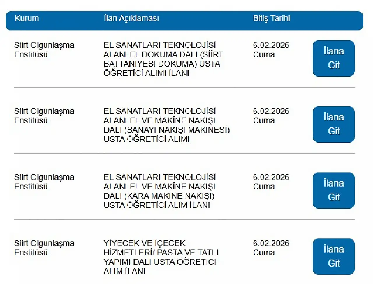 - Siirt'te 4 alanda alım! Olgunlaşma Enstitüsü usta öğretici arıyor